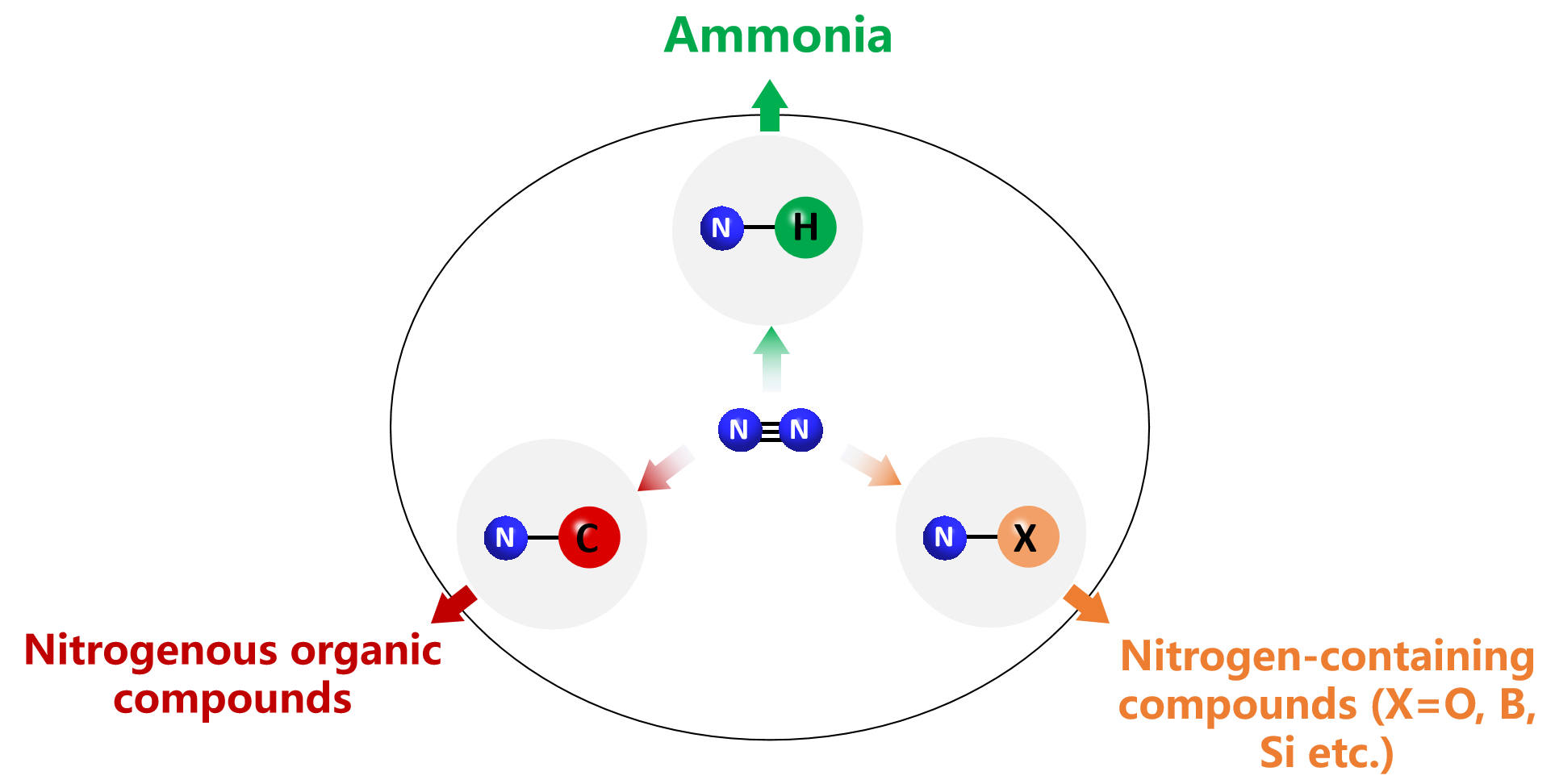 Nitrogen atoms are essential component of fertilizers and medicaments. The fixation of the stable dinitrogen molecules under mild conditions has been a long-sought-after goal in chemistry considering the critical need to reduce the energy consumption and carbon dioxide emission.