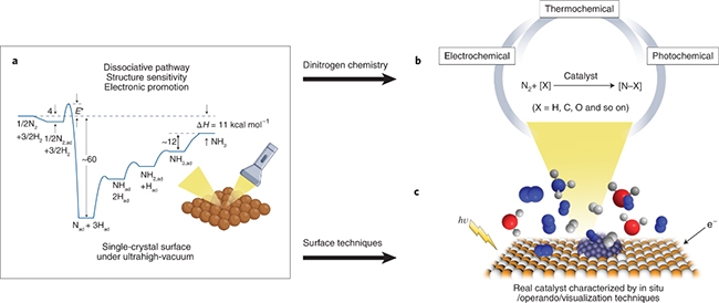 In recent years, research on nitrogen conversion has shown a new development trend, especially "green synthetic ammonia driven by renewable energy" is a cutting-edge topic in this research field. In terms of thermal catalysis, since the energy required for direct dissociation of nitrogen molecules on traditional transition metal catalysts and subsequent hydrogenation into ammonia is relatively high, the next step of research should be to explore new modes of activation and conversion of nitrogen molecules and new concepts for catalyst design to overcome the difficult problem of "efficient synthesis of ammonia under mild conditions". The use of light, electricity, plasma, chemical looping and other methods has added new dimensions to the synthesis of ammonia and contains new opportunities. In addition to ammonia, the synthesis of compounds containing NX (X=H, C, O, etc.) bonds from nitrogen is an emerging and extremely challenging basic research topic in recent chemical nitrogen fixation research. The rapid development of surface science in in situ detection and visual characterization of catalysts can also further contribute to the new direction of nitrogen fixation research.